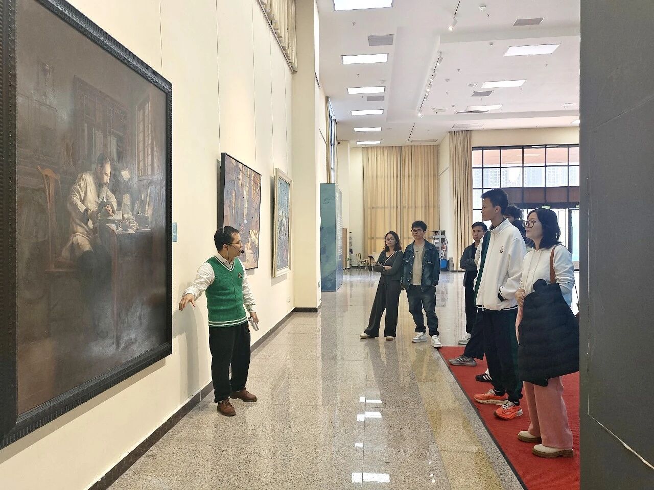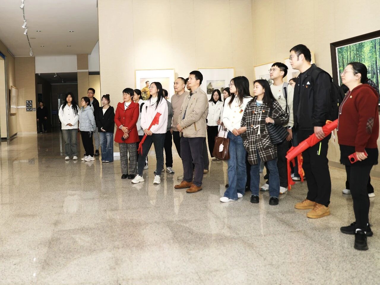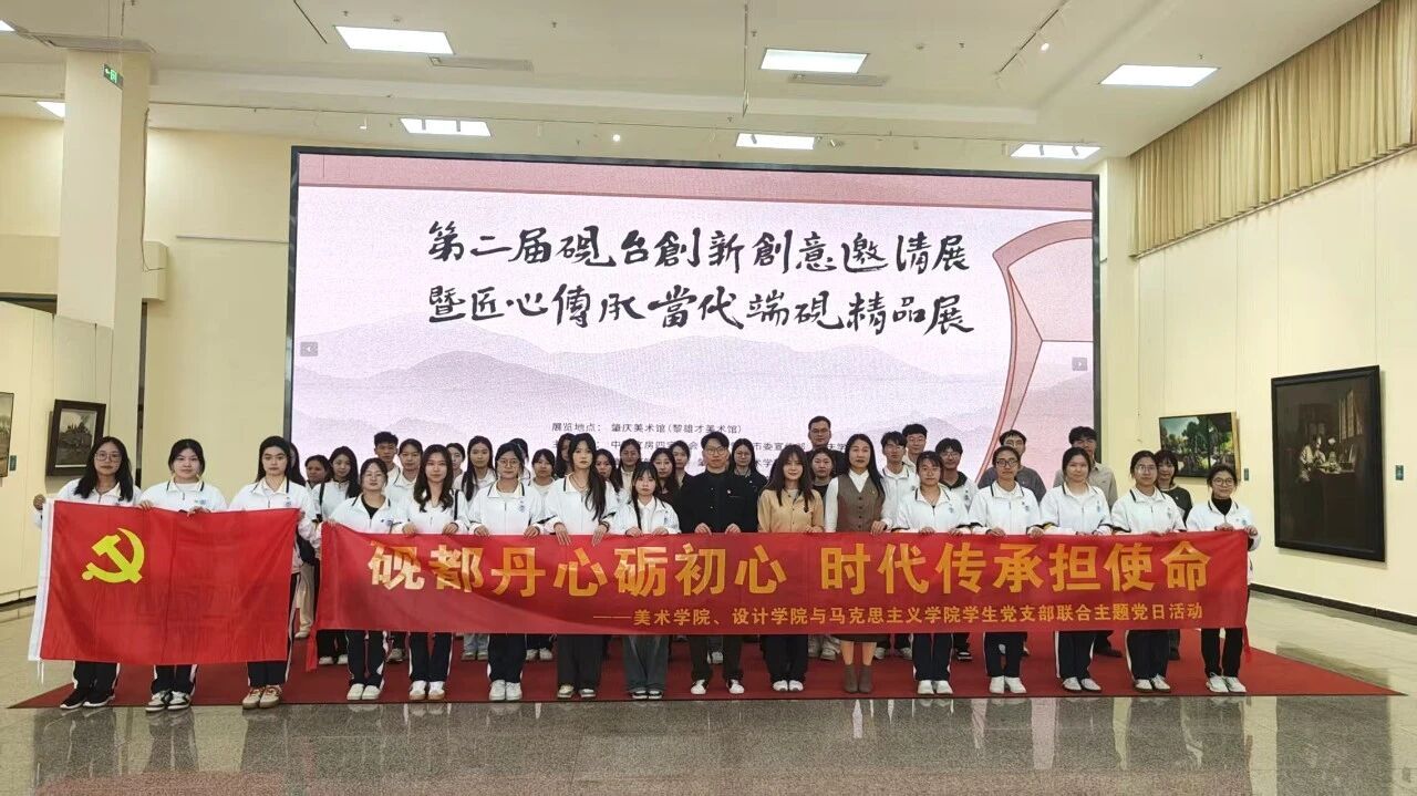 上图:肇庆市委宣传部,肇庆学院物资采购中心、研究生党支部,以及美术/设计学院、马克思主义学院,环化学院和历史学院,还有肇庆市技师学院“红扣子”游学团等在美术馆举行党日活动。