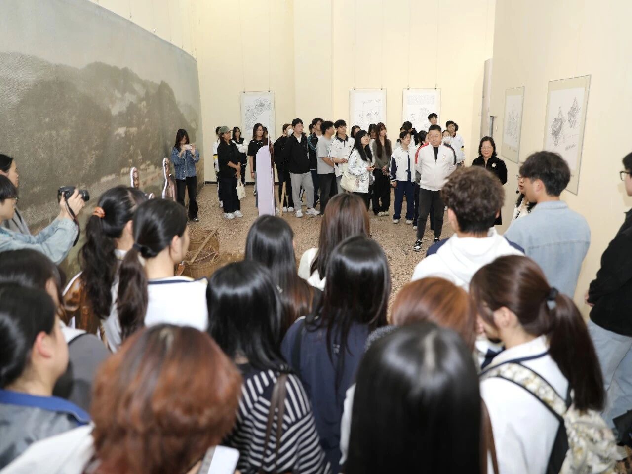 有肇庆学院通识课《中国经典名画赏析》班级同学,端州区青少年宫师生,怀集怀城镇初级中学和怀集一中师生等观展。